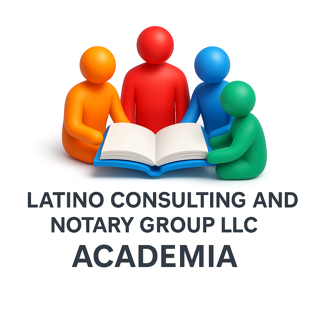 En Latino Consulting and Notary Group LLC, creemos firmemente que el conocimiento es una herramienta de transformación personal, profesional y comunitaria. Por eso nace nuestra ACADEMIA, una extensión educativa de nuestra organización, creada con el propósito de brindar formación práctica, accesible y de alta calidad a migrantes, emprendedores y profesionales hispanohablantes en Estados Unidos.