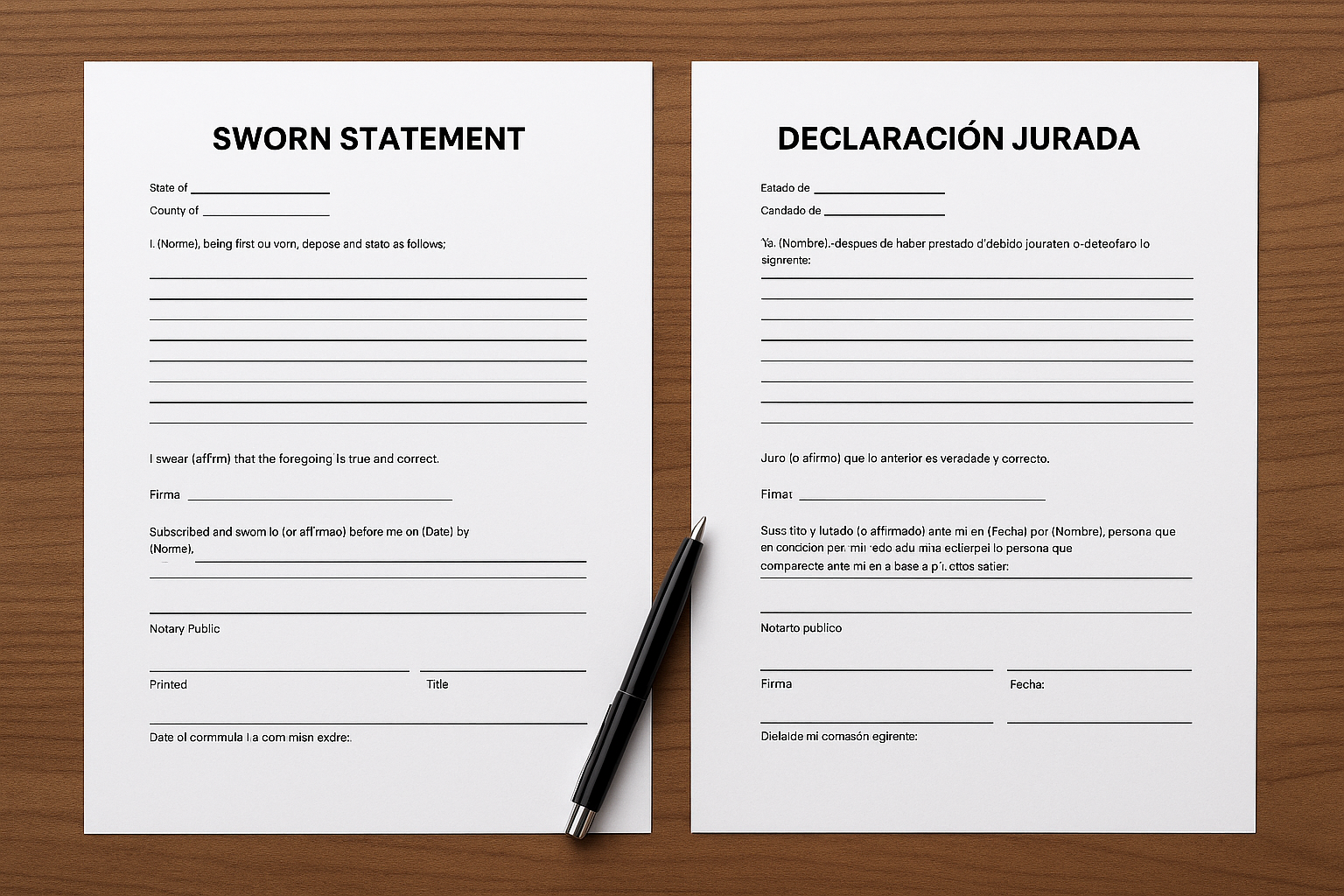 Plantillas de Declaración Jurada para la Corte (Español e Inglés)