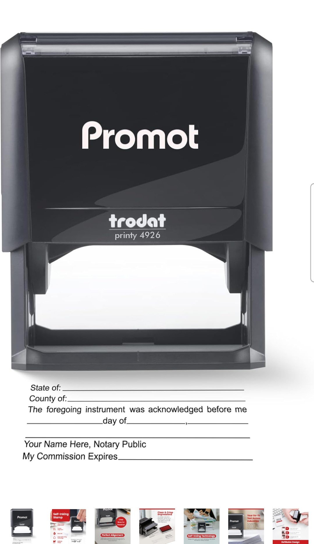 El Promot Sello de reconocimiento notario combina funcionalidad con estética. Con su moderna tinta negra, cada estampado tiene un acabado profesional y nitidez excepcional. Ideal para contratos, certificados y otros documentos legales, este sello asegura que la identificación notarial sea clara y respetable. Además, su diseño ergonómico facilita el manejo y asegura máxima comodidad durante largas jornadas de trabajo.